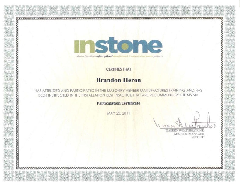 Certified “Culture Stone” (Manufactured Stone Veneer) Installer