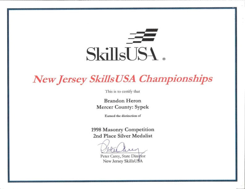 Second place in NJ for Masonry Skills